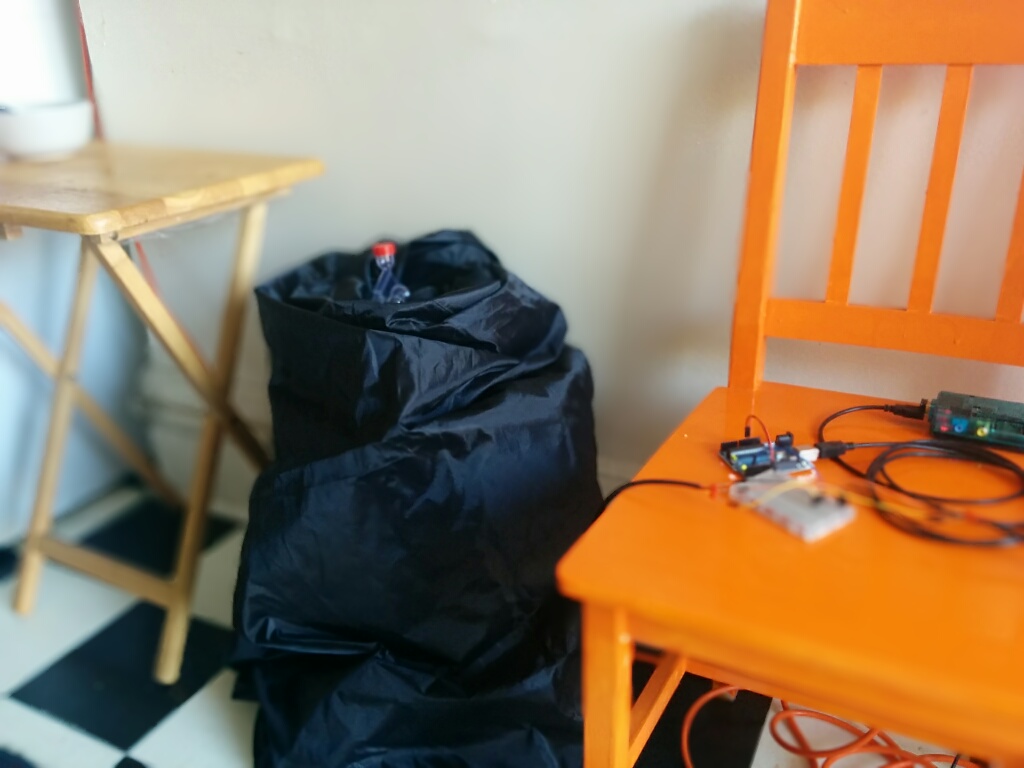 And here we are tucking in her for the long fermentation ahead. Once the fermentation settled down a bit, our new concern was keeping the beer warm enough to prevent the fermentation from stalling. Wrapping the bucket in a blanket will help retain the exothermic heat from the fermentation as well as shield from the slightly cooler ambient conditions (we don’t use space heating in my apartment, not really needed in the Bay Area. But that also means temps can get down into the 50’s). I may throw a hot water bottle under the blanket occasionally. Good thing I have the temperature logger to keep tabs on everything!!!