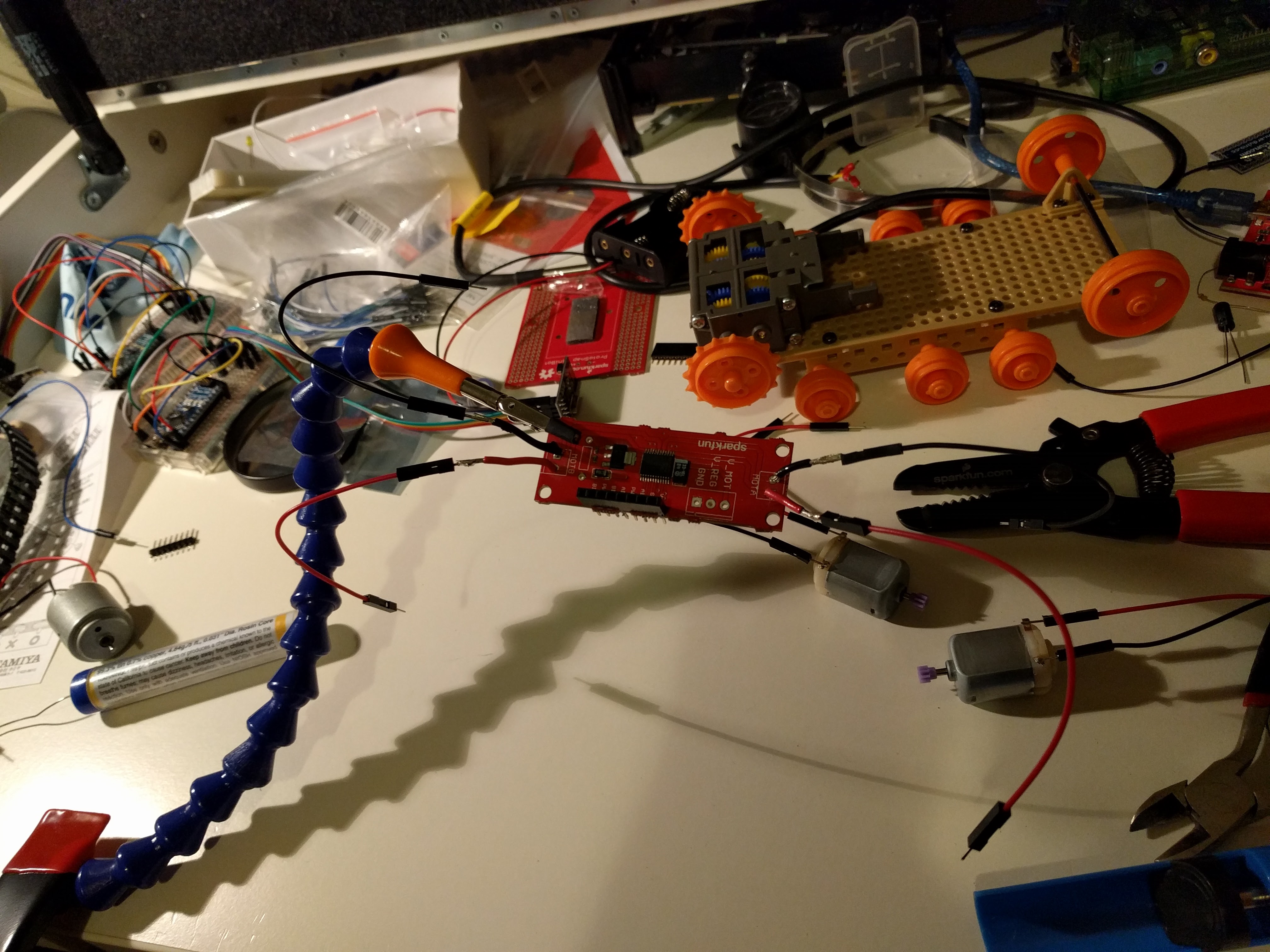 Adding extension wires to the motor driver and to the tank chassis motors.